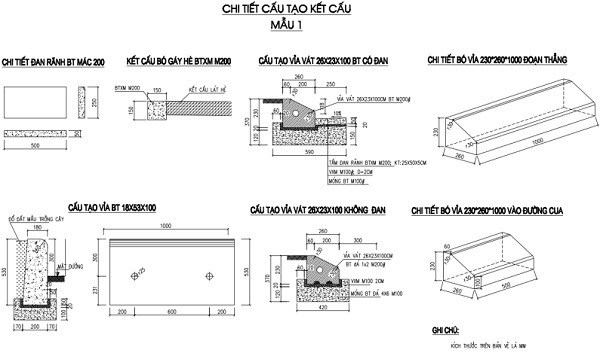 Bó vỉa bê tông được thiết kế theo tiêu chuẩn kỹ thuật như sau: