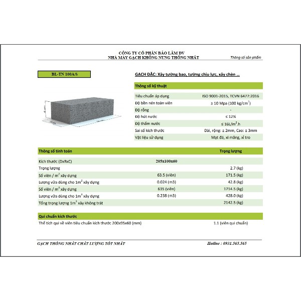 HỒ SƠ NĂNG LỰC NHÀ MÁY GẠCH THỐNG NHẤT